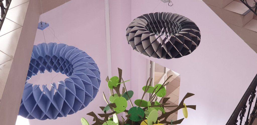 Акустическая подвесная панель МАКСТОР создана для создания акустического комфорта и визуального офисного пространства. А также служит хорошим поглотителем шумов и эха в кабинете.